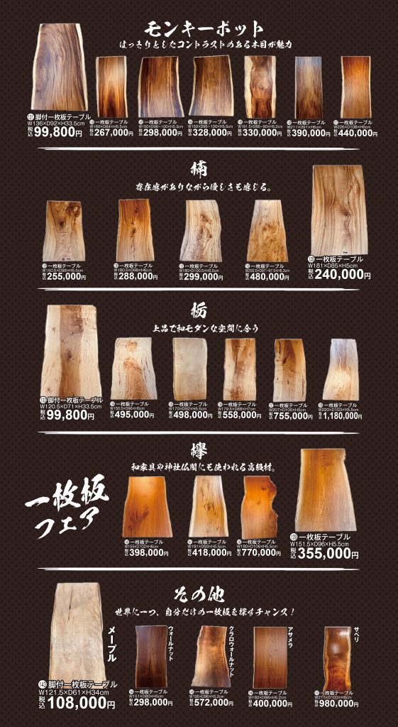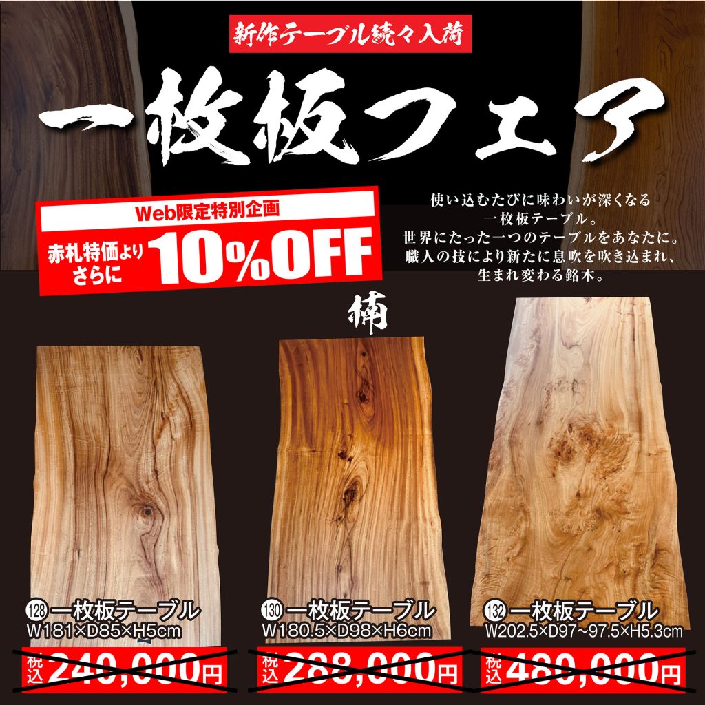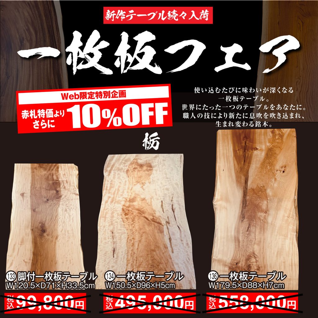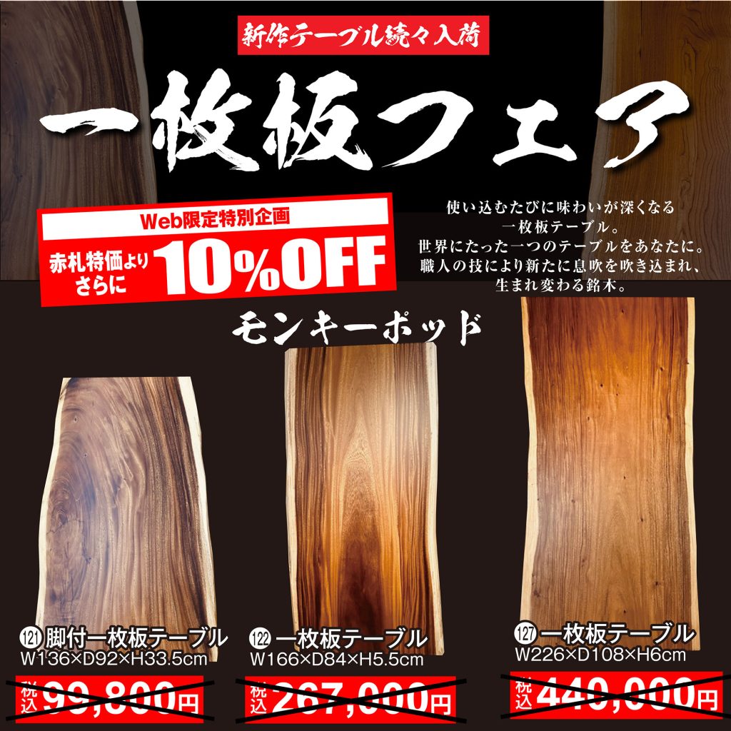 一枚板テーブルを表示価格から10%offにてご提供いたします!!