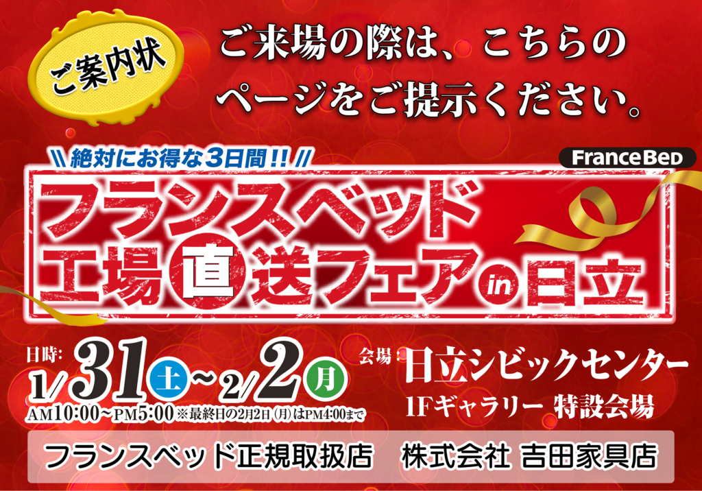 ※最終日の2月2日(月)はAM10:00~PM4:00